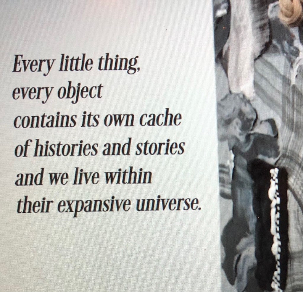 Ieder dingetje, ieder object bevat een eigen verborgen geschiedenis, vertelt een verhaal en wij leven in hún uitgestrekt universum.